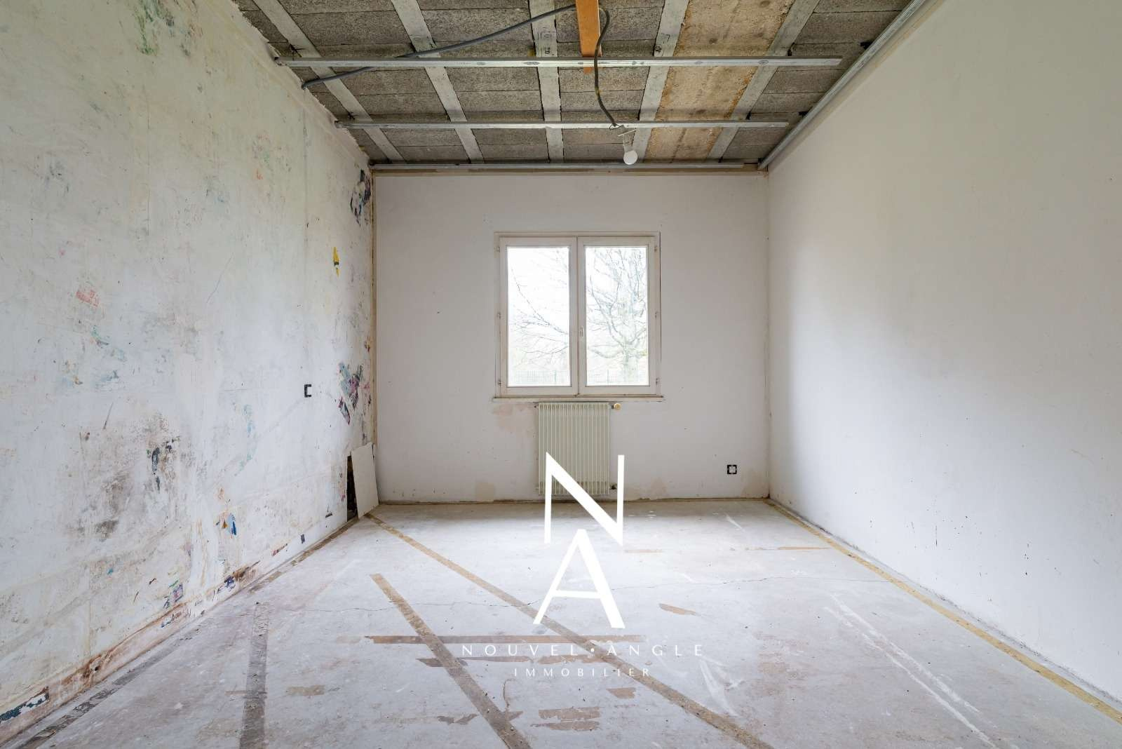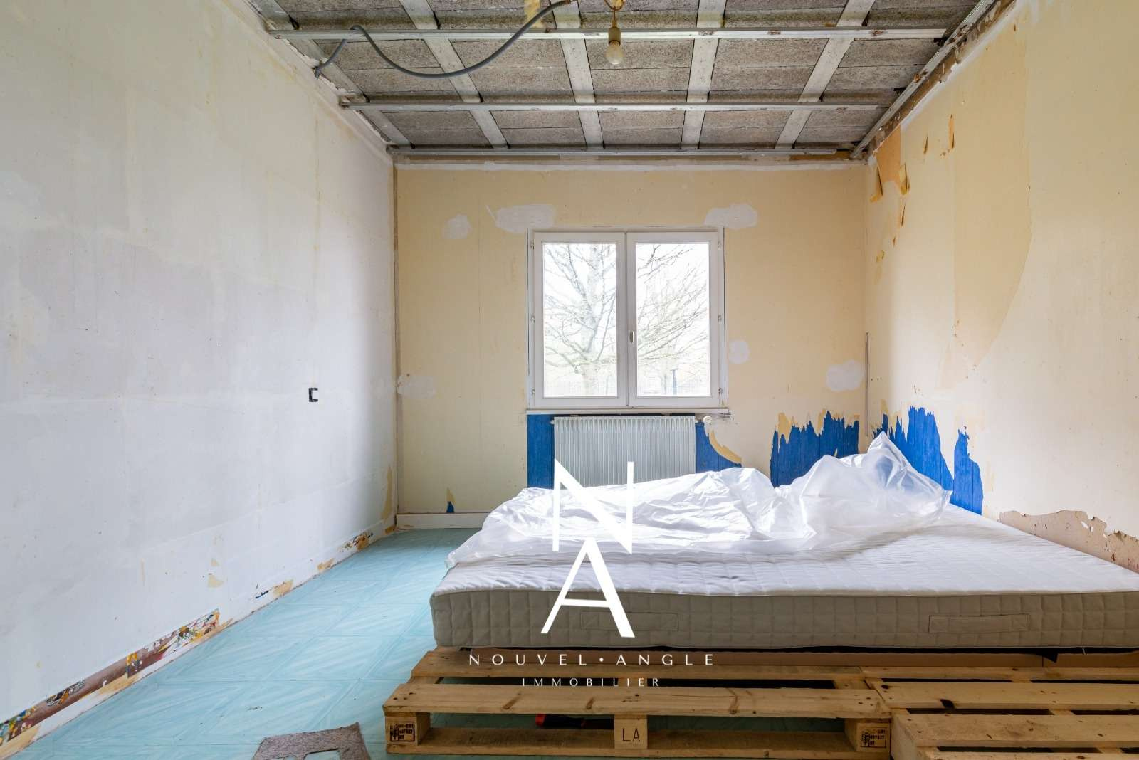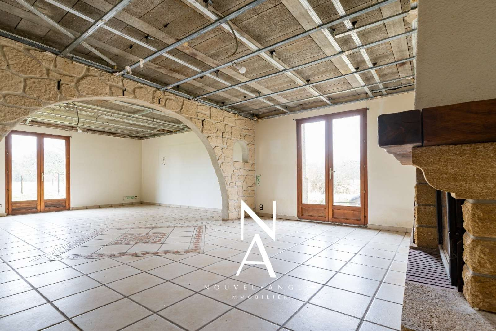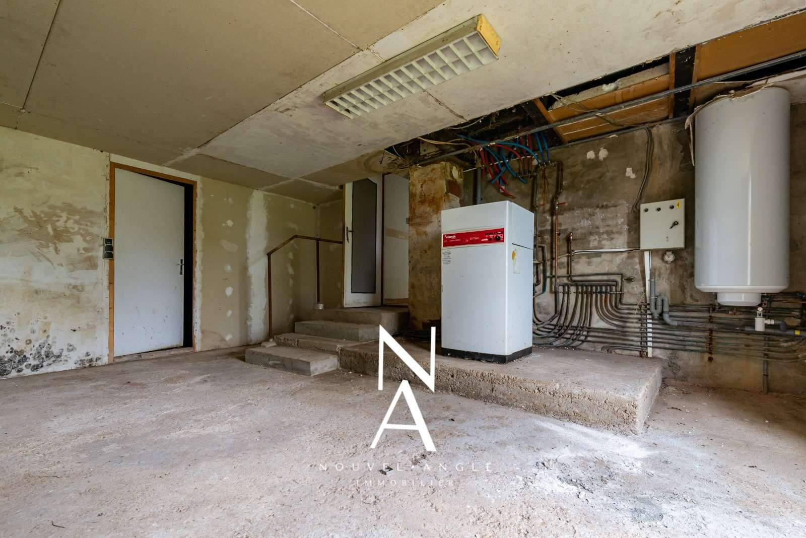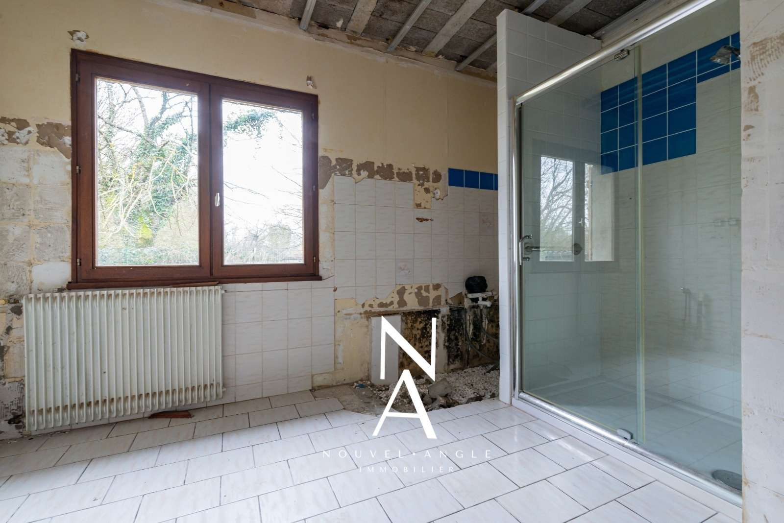 Maison de plain-pied à rénover, 135 m² habitables comprenant; salon/séjour sur cuisine ouverte avec cheminée centrale, 4 chambres, salle de bain, WC. À la suite, la chaufferie, l'accès grenier et le garage double.