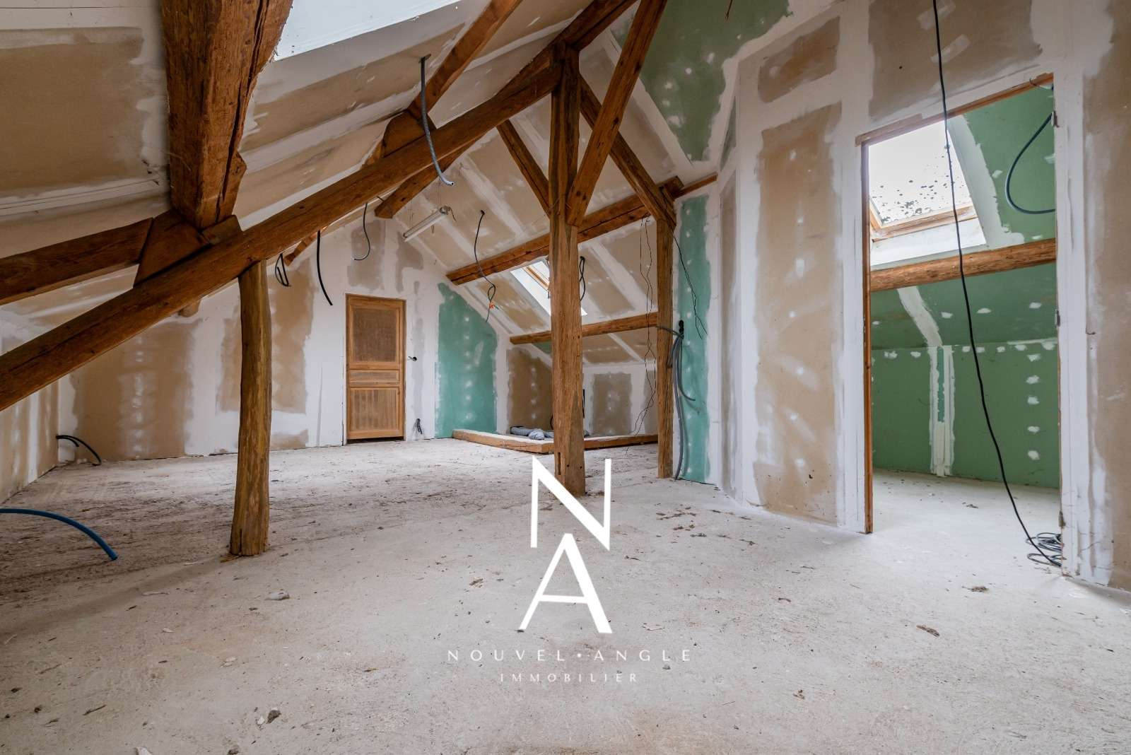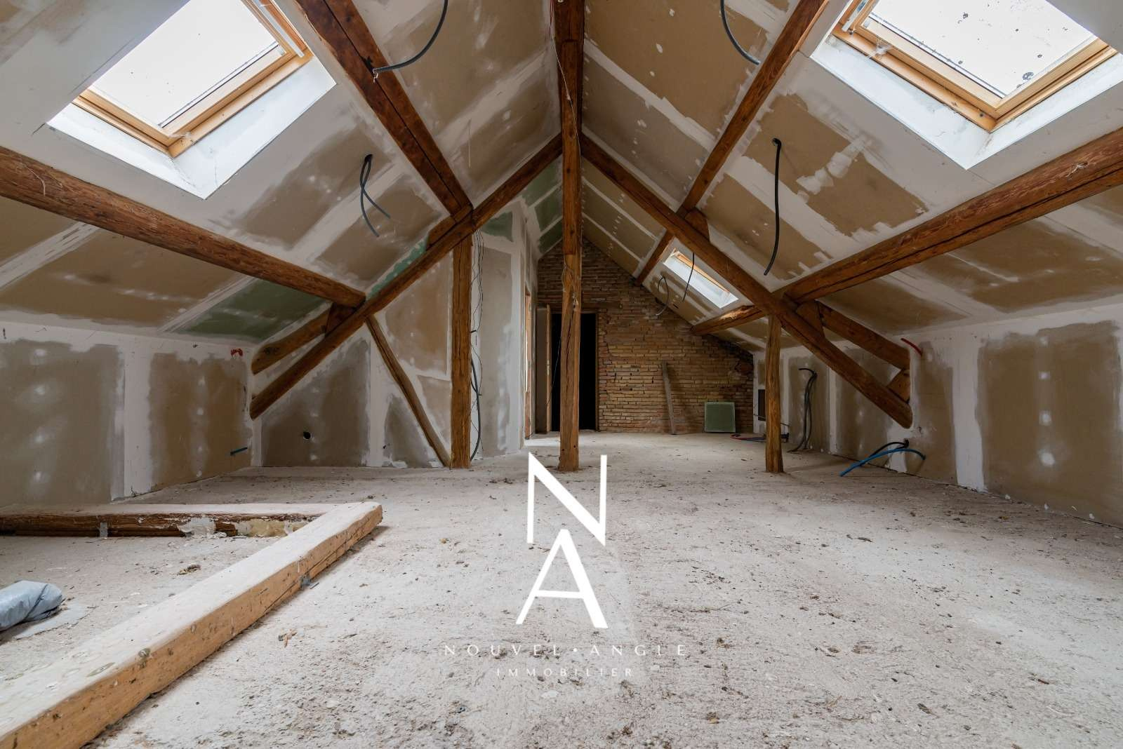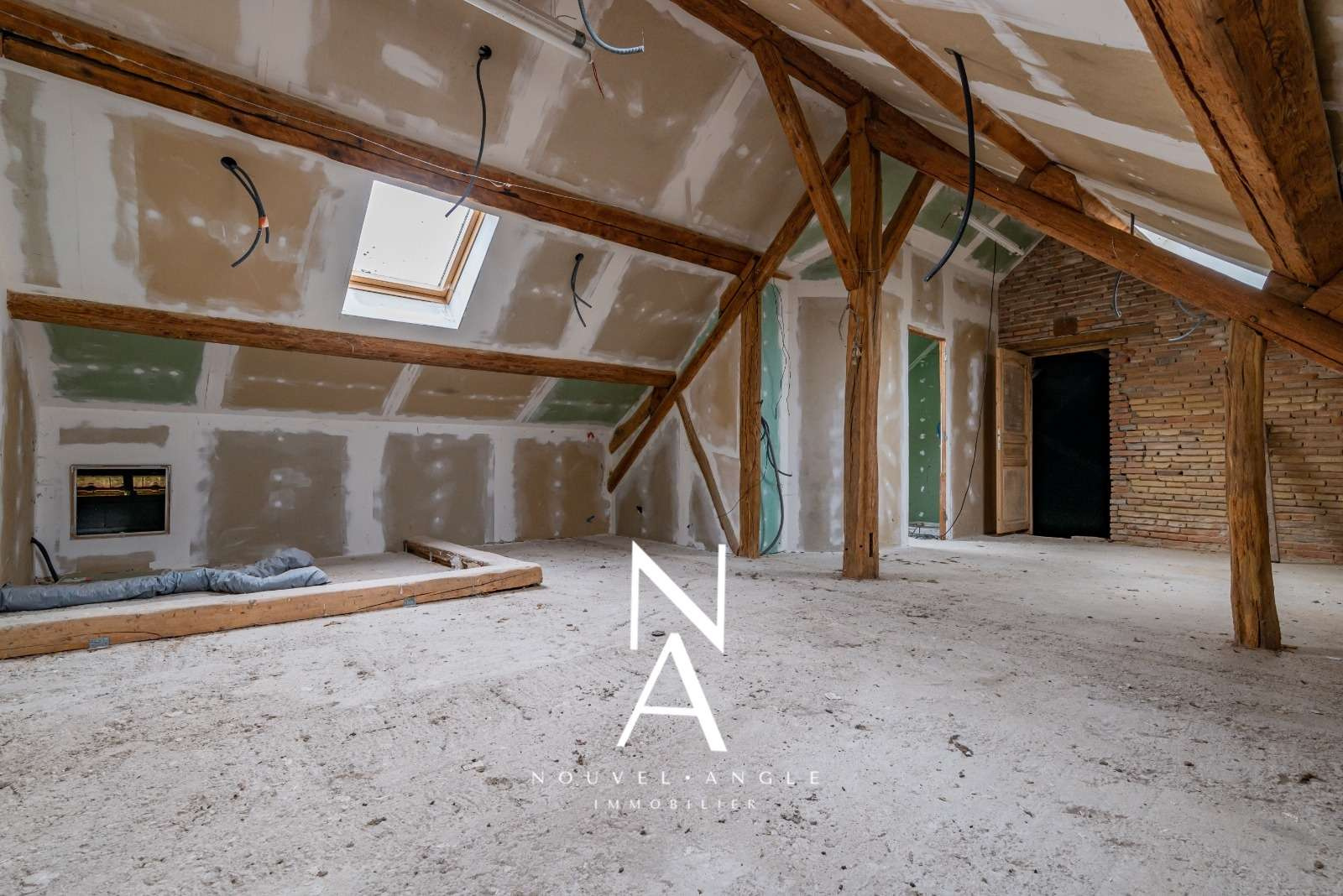 À l'étage vous découvrirez un espace de 70 m² en partie rénové, avec une magnifique charpente traditionnelle.